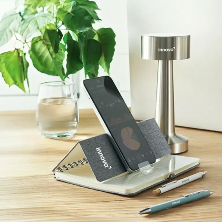 Artículos promocionales elegantes y útiles para congresos profesionales: bolígrafos, carpetas, agendas, libretas, tazas, USBs o cargadores que transmiten profesionalidad.