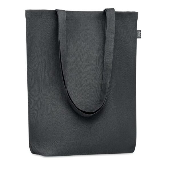 NAIMA TOTE, la bossa de compres de tela 100% cànem ideal per a accions promocionals i esdeveniments. Perfecta com a bossa corporativa per a marxandatge. Resistent i ecològica, amb nanses llargues per a major comoditat. Disponible en negre, blau, verd i beix. Inclou manxa inferior per a major capacitat. Personalització mitjançant serigrafia o brodat, ideal per a campanyes sostenibles i regals corporatius publicitaris. Perfecta com a bossa promocional reutilitzable. 200 gr/m². Dimensions: 38x10x42 cm.