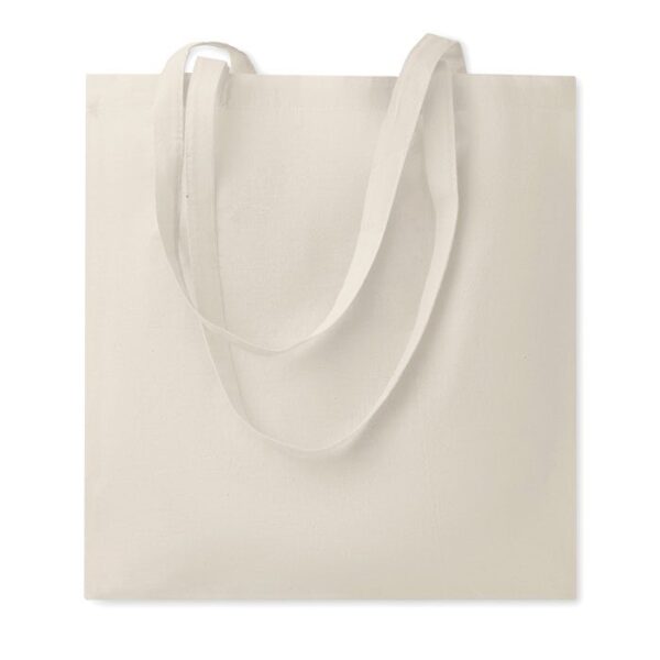 TURA, la bolsa de algodón ecológico perfecta para campañas publicitarias. Fabricada en la UE con algodón de 180 gr/m², esta bolsa de tela es ideal para eventos o ferias. Sus asas largas facilitan su uso, ideal para llevarla al hombro. Personalizable mediante serigrafía o bordado con el logotipo de tu empresa. Disponible en color beige, esta bolsa promocional es un regalo corporativo sostenible y funcional. Perfecta para merchandising o como parte de regalos corporativos.