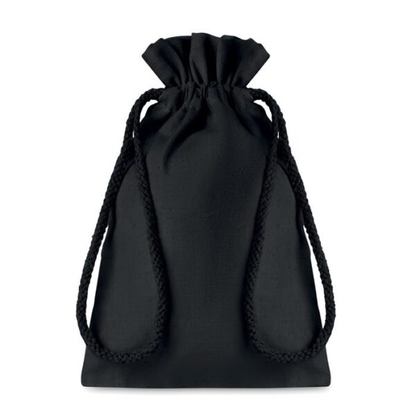 La bolsa TASKE SMALL es una excelente opción como bolsa corporativa promocional. Fabricada en algodón de 105 gr/m², esta bolsa pequeña, de 14×22 cm, es ideal para presentar regalos personalizados en eventos y campañas publicitarias. Su diseño con cierre de cordón la hace práctica y atractiva. Disponible en color negro, permite la personalización mediante serigrafía o tampografía, resaltando tu logotipo. Perfecta para ferias y como parte de tus artículos promocionales para empresas, ofreciendo un packaging publicitario elegante y funcional.