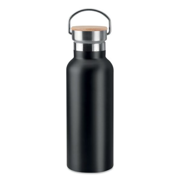Botella acero inoxidable doble pared 500ML tapa bambú y asa