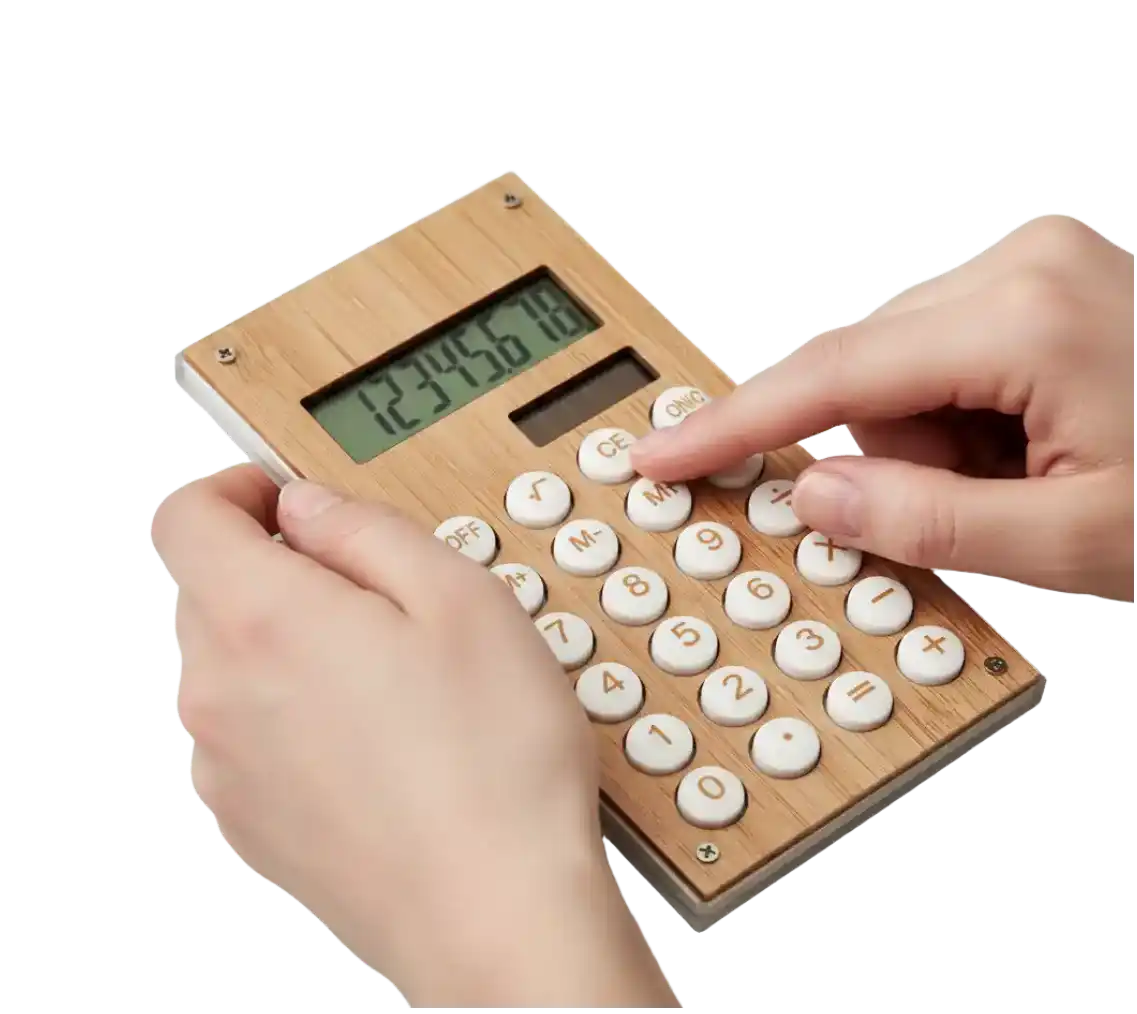 En Barcino Gifts disponemos de calculadoras publicitarias de sobremesa, solares, científicas y ecológicas de bambú personalizadas con logo.