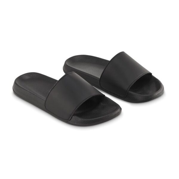 Chanclas KOLAM, ideales como regalo corporativo para eventos veraniegos. Fabricadas en EVA, son antideslizantes, cómodas y perfectas para promociones playeras. Disponibles en negro, blanco y azul marino. Un artículo promocional personalizado con el logotipo de tu empresa mediante serigrafía. Ideales como artículos promocionales para campañas de marketing y regalos corporativos. Perfectas para ferias, eventos o como calzado publicitario. Talla 38-39.