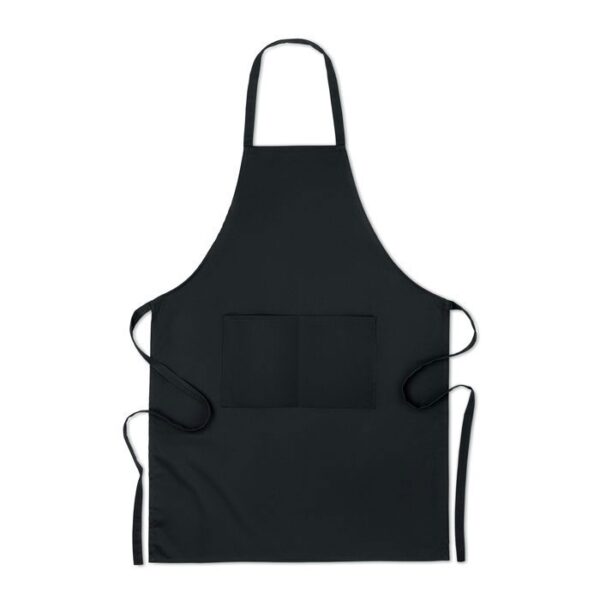 Delantal de cocina negro en algodón orgánico con dos bolsillos frontales