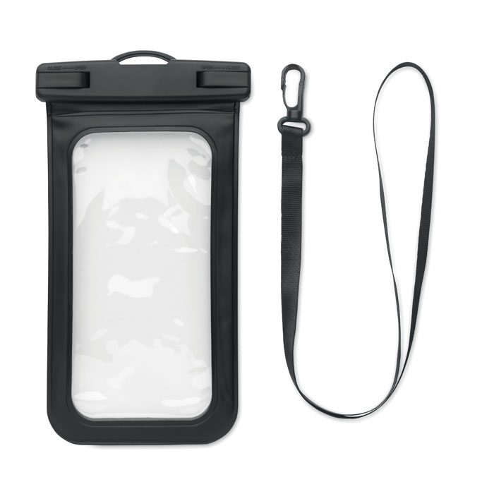 La funda impermeable SMAG es el accesorio promocional perfecto para eventos acuáticos o campañas de verano. Fabricada en PVC resistente, protege tu móvil hasta 6,7 pulgadas con certificación IPX8. Su cordón ajustable y desmontable la convierte en un regalo corporativo práctico y seguro. Ideal para personalizar con el logotipo de tu empresa mediante serigrafía, esta funda publicitaria negra es un artículo promocional que destaca por su utilidad y visibilidad. Perfecta para regalos corporativos o artículos promocionales personalizados.