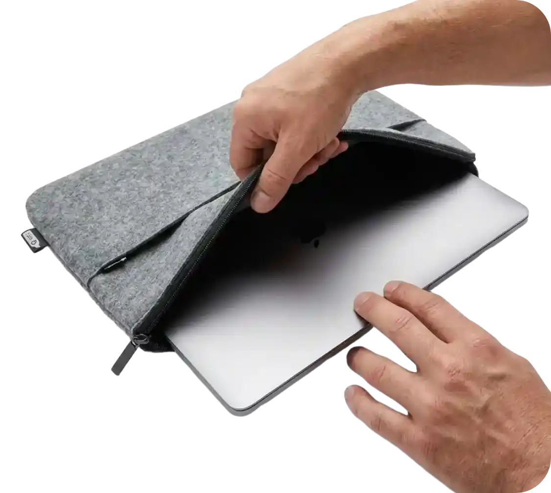 Las fundas de fieltro o tela reciclada son ligeras y sostenibles; las fundas de neopreno personalizadas ofrecen protección y flexibilidad; y los maletines para portátil personalizados aportan un acabado más profesional.