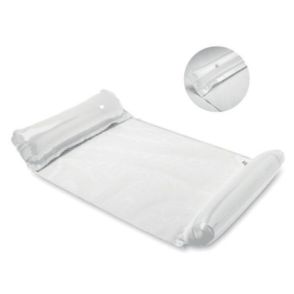 La hamaca hinchable HAMAFLOAT es un accesorio esencial para disfrutar del verano. Fabricada en PVC resistente con red de malla, ofrece comodidad y seguridad en la piscina. Ideal como regalo corporativo promocional en eventos de verano, acciones publicitarias o como parte de un kit de bienvenida para empleados. Perfecta para personalizar con el logotipo de tu empresa mediante serigrafía, creando artículos promocionales para empresas únicos. Disponible en blanco y azul royal, esta hamaca hinchable es un detalle que tus clientes apreciarán. Peso máximo 80kg.