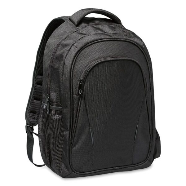 La mochila para portátil MACAU es el artículo promocional perfecto para eventos corporativos y campañas de marca. Fabricada en poliéster 1680D de alta resistencia, ofrece múltiples compartimentos para una organización óptima. Su diseño acolchado en la parte posterior y las asas garantizan la máxima comodidad. Ideal como regalo corporativo personalizado, esta mochila negra promocional es perfecta para personalizar con serigrafía o bordado. Una opción versátil para regalos corporativos y artículos promocionales para empresas.