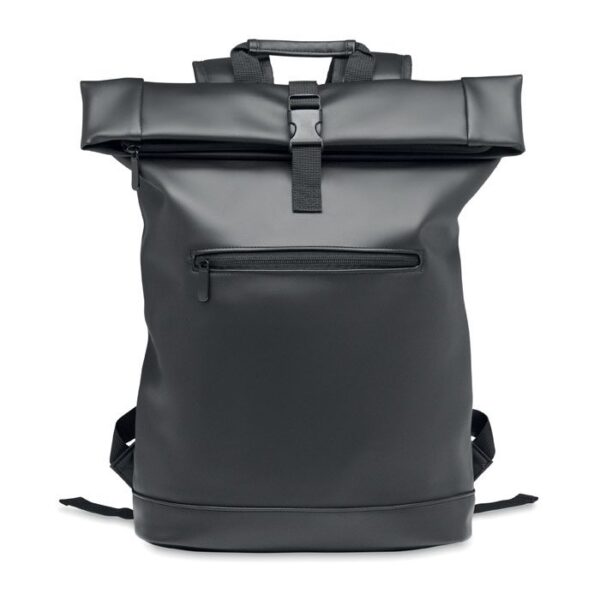 BAI ROLL es una mochila roll top corporativa ideal como regalo promocional. Fabricada en suave PU con forro RPET 210D, ofrece un diseño moderno y funcional con respaldo acolchado y base reforzada. Cuenta con un amplio bolsillo frontal con cremallera para fácil acceso. Perfecta para personalizar con tu logotipo mediante serigrafía. Esta mochila promocional es ideal para eventos, campañas de marca y como artículo publicitario de alta calidad. Disponible en negro y blanco.
