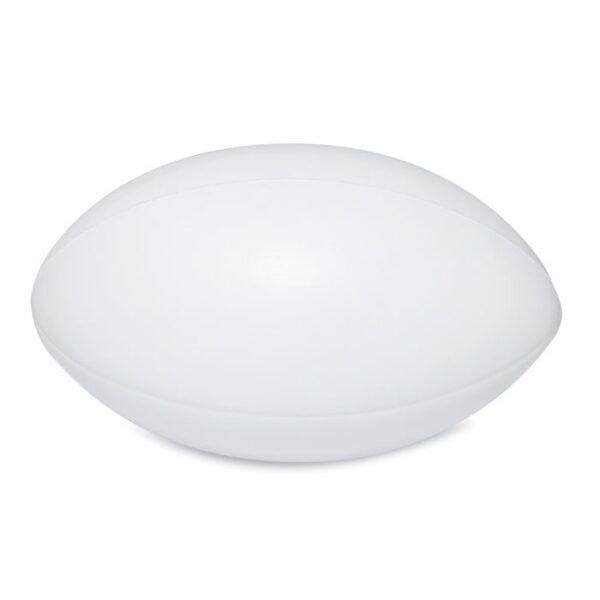 El antiestrés corporativo con forma de balón de rugby es un divertido artículo promocional para campañas publicitarias o eventos deportivos. Fabricado en PU, ofrece un tacto suave y agradable, ideal para aliviar el estrés. Personalizable mediante tampografía con el logotipo de tu empresa, este antiestrés publicitario es un regalo promocional original y útil. Perfecto como artículo promocional para empresas del sector deportivo o para regalos corporativos personalizados. Disponible en color blanco, este antiestrés promocional atraerá todas las miradas.