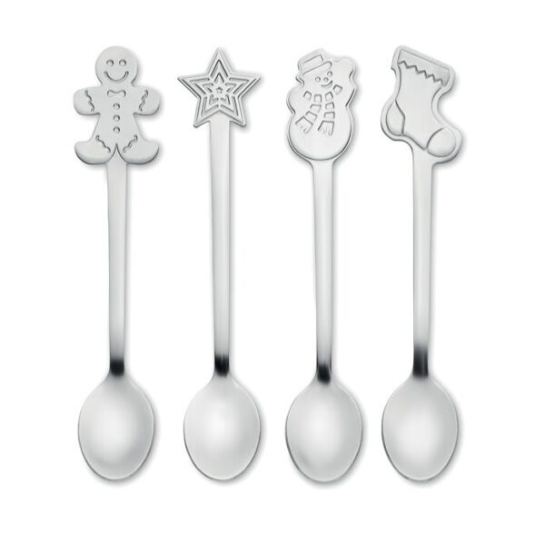 Juego de cuatro cucharas de té navideñas de acero inoxidable