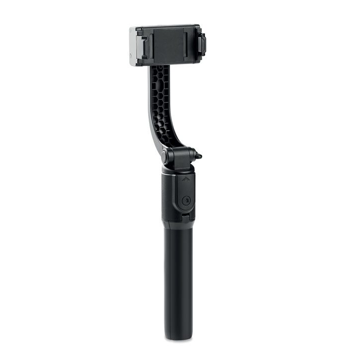 GIMBA es un soporte telescópico estabilizador para smartphones que también funciona como trípode. Ideal como regalo corporativo o artículo promocional. Fabricado en materiales resistentes, cuenta con un gimbal de 1 eje y batería de LiB de 400 mAh. Perfecto para eventos, ferias y acciones promocionales. Personalizable con tu logo mediante serigrafía o grabado láser. Disponible en color negro. Un artículo promocional para empresas que buscan regalos corporativos prácticos y modernos. Medidas: 20.5 x 8.2 x 4.5 cm.