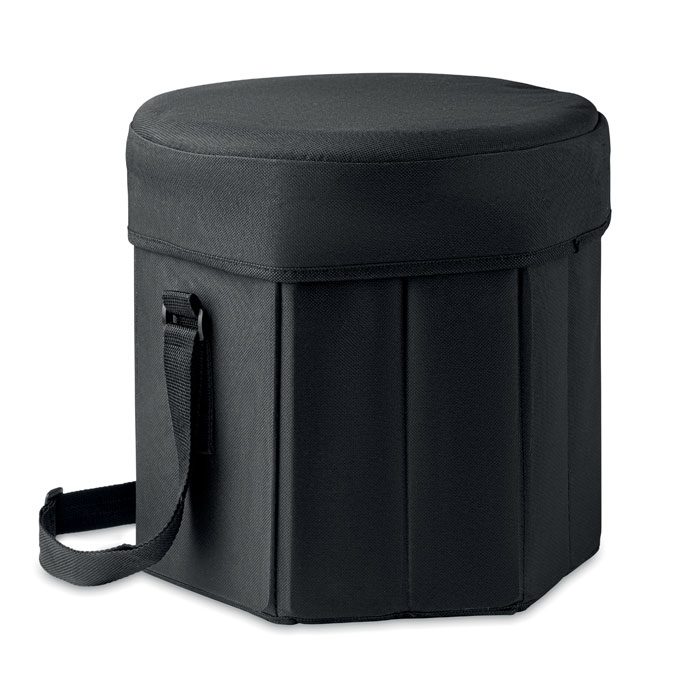 Seat & Drink, el taburete corporativo 2 en 1 perfecto para eventos promocionales. Fabricado en resistente poliéster 600D, este artículo promocional combina un cómodo asiento plegable con una práctica bolsa isotérmica. Ideal como regalo corporativo personalizado, soporta hasta 80 kg. Su cinta bandolera facilita el transporte, mientras que el aislamiento de aluminio mantiene tus bebidas frías. Disponible en color negro, personalízalo con tu logo para campañas publicitarias impactantes. Perfecto para ferias y eventos. Dimensiones: 28.5 x 28 x 28 cm.