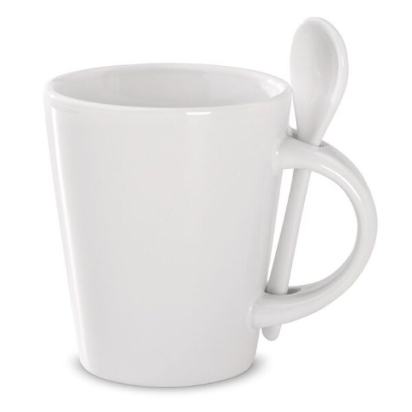 Taza de gres blanca de 300 ml con cuchara integrada