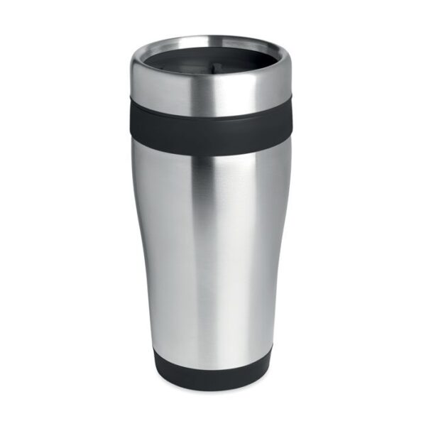 El vaso de viaje TRAM es un artículo promocional ideal para empresas. Fabricado en acero inoxidable de doble capa, mantiene la temperatura de tus bebidas por más tiempo. Su interior y tapa en PP aseguran un cierre hermético. Con una capacidad de 455 ml, es perfecto para llevar a eventos o campañas de marca. Personalízalo con tu logo mediante grabado láser o serigrafía. Disponible en color negro, es un regalo corporativo práctico y elegante para promociones publicitarias.